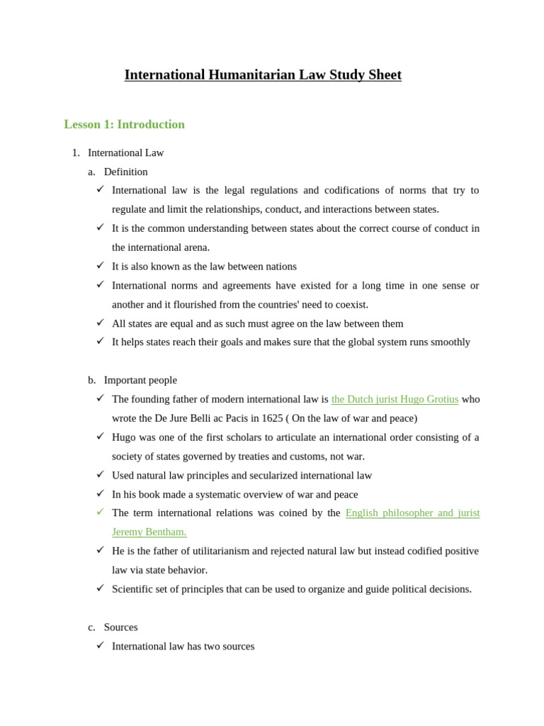International Humanitarian Law Study Sheet | PDF | International Law ...