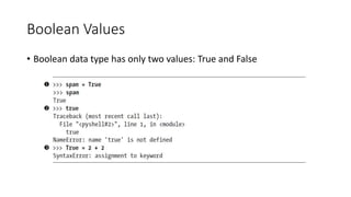 05 Booleans - #Boolean Values #Python either returns True or False ...