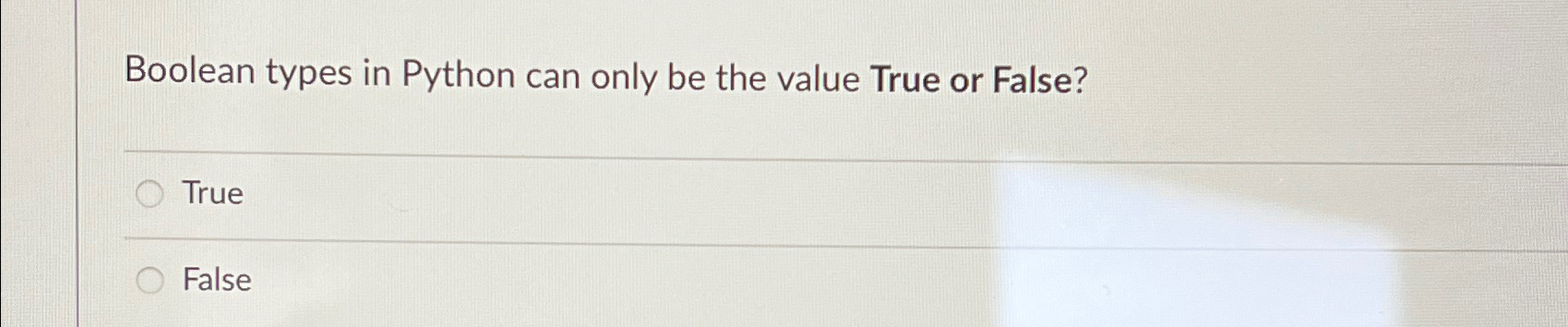 Solved Boolean types in Python can only be the value True or | Chegg.com