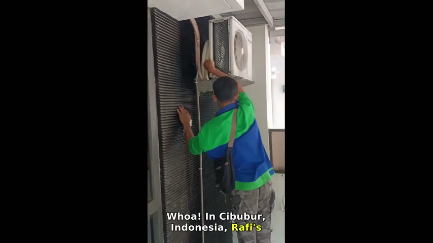 Man takes a tumble cleaning AC in Java