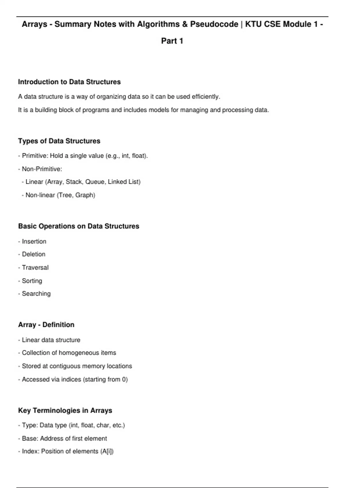 Summary Arrays – Simplified Notes with Algorithms & Pseudocode | KTU ...