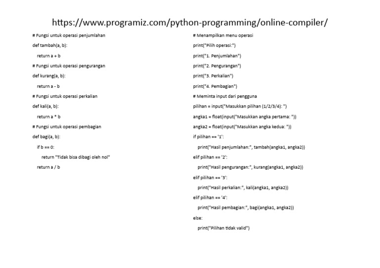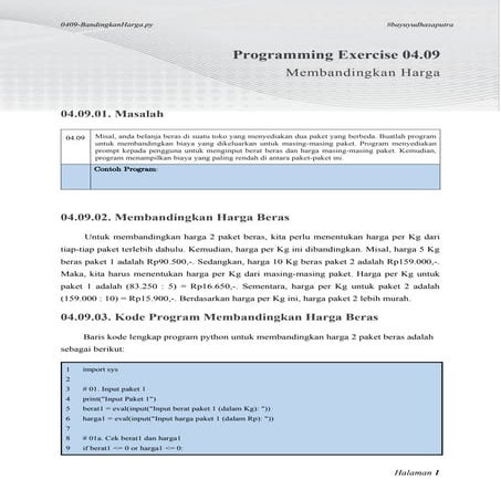 Based on this image's title: “20 Contoh Program Python Sederhana Untuk Latihan Pemula | PDF”