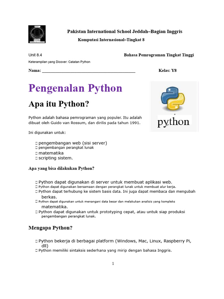 Panduan Belajar Python untuk Y8 | PDF