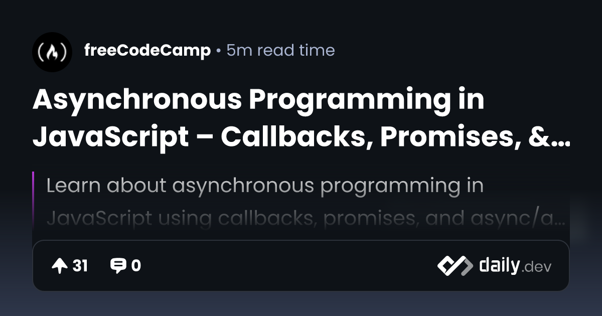 Asynchronous JavaScript Course (Async/Await, Promises, Callbacks) : r/DevTo