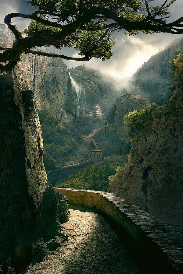 Solve Mountain Path, Waterfall and Castle jigsaw puzzle online with 54 ...