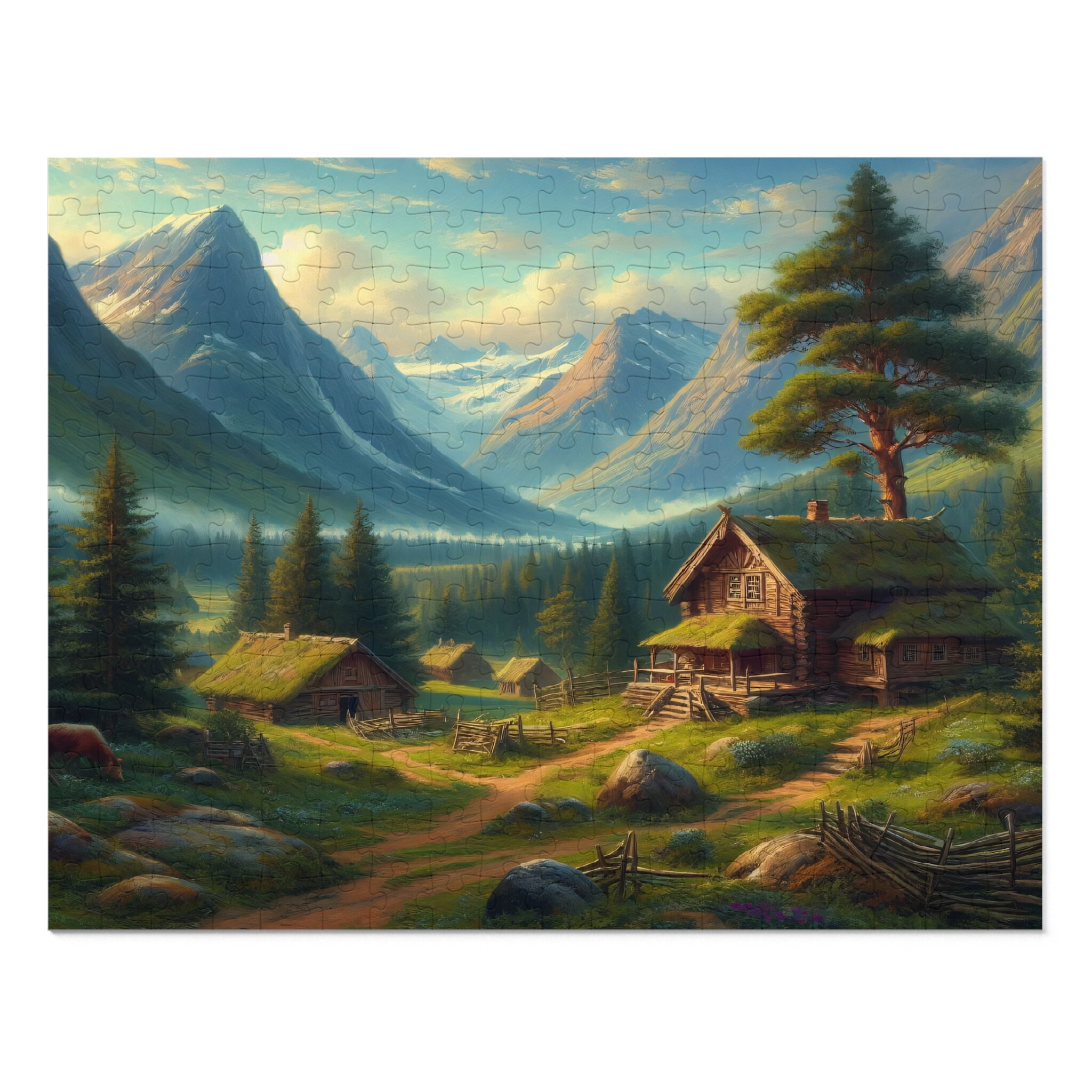 Mountain Cabin Landscape Jigsaw Puzzle (30, 110, 252, 500, 1000 Piece ...