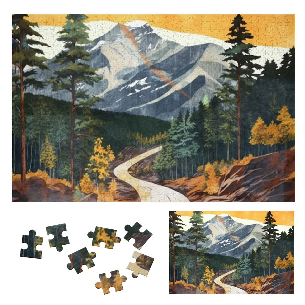 JEUXUS Mountain Trees Road Wooden Jigsaw Puzzle for Adults and Kids ...