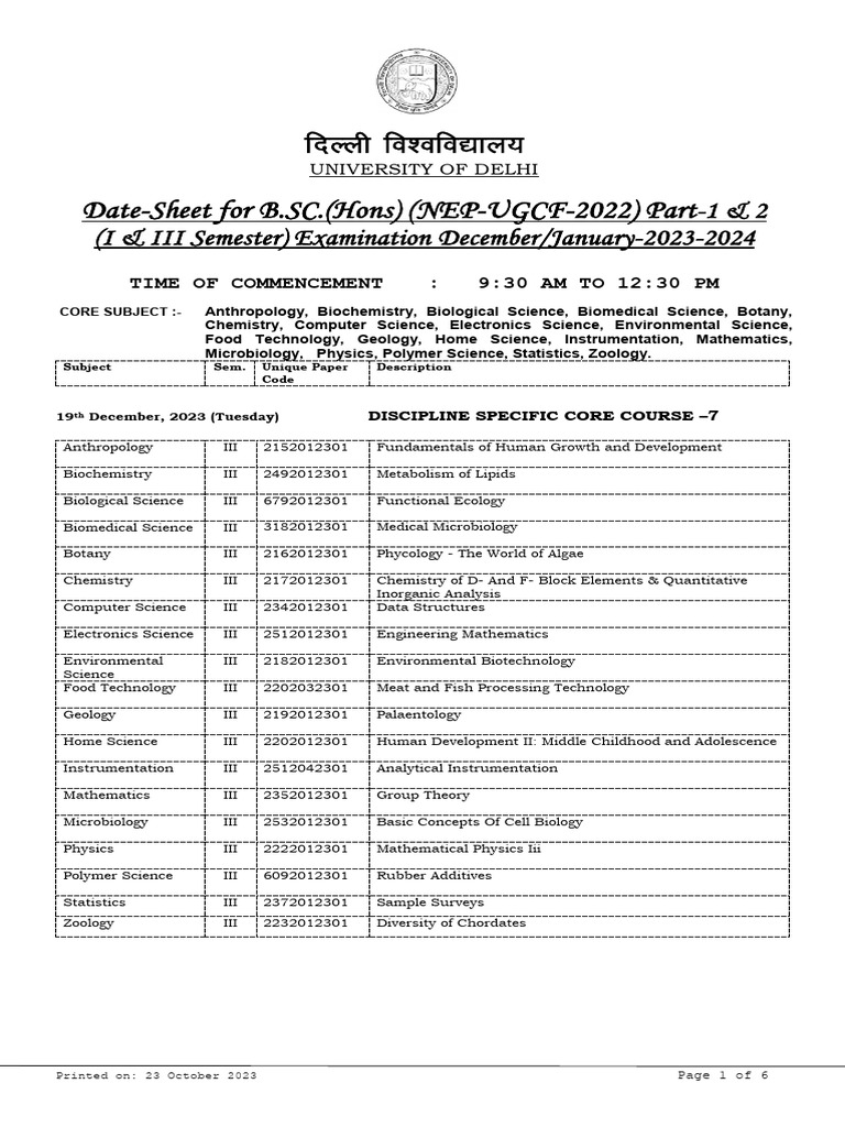 2023-10-23-Nep-B.sc. (H) 23-Sem - Iii-I | PDF | Science | Biology
