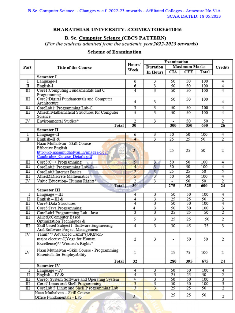 BSc Computer Science Syllabus NEP 2020 | PDF | Pointer (Computer ...