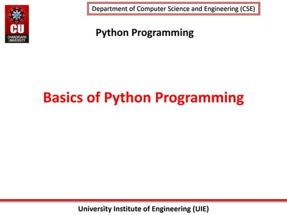 Based on this image's title: “Basics of Python Programming | PPTX
