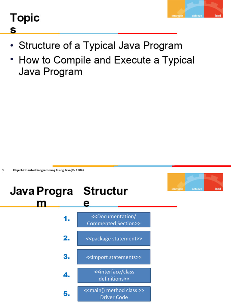Based on this image's title: “Typical Structure of a Java program - TutorialKart.com