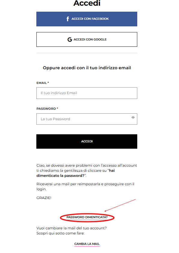 Cosa fare se ho dimenticato la password : Consumer Support