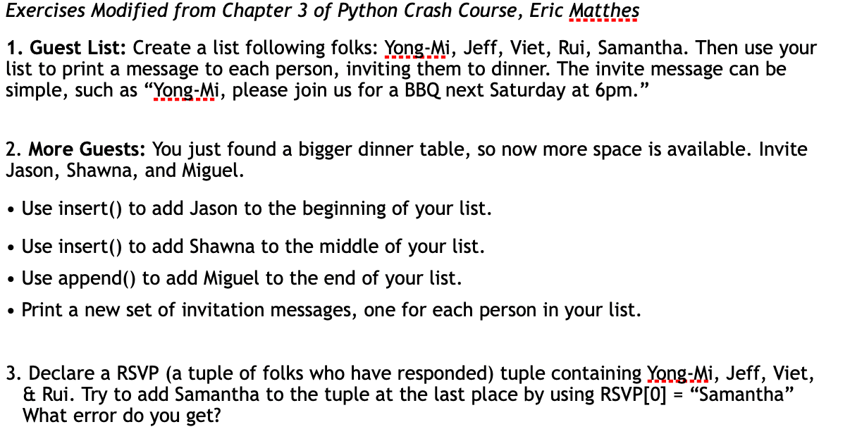 Solved Exercises Modified from Chapter 3 of Python Crash | Chegg.com