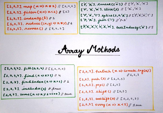 JavaScript Array Methods simply explained π https://t.co/QgNtBq5QQP ...