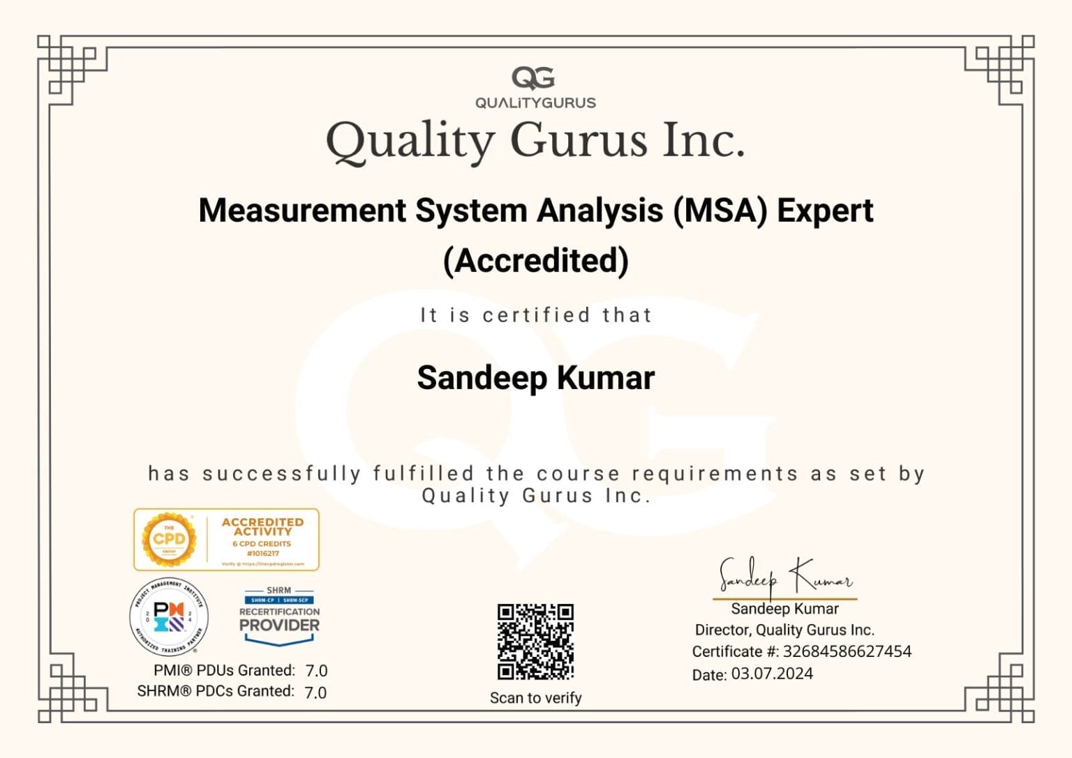 Measurement System Analysis (MSA) Expert (Accredited) | Quality Gurus