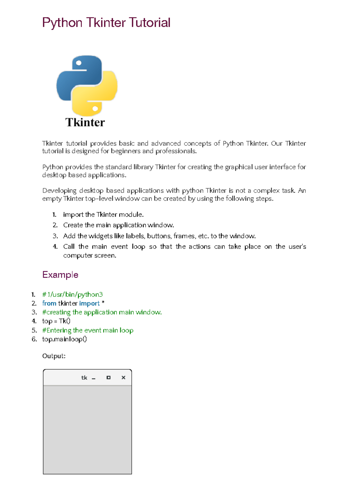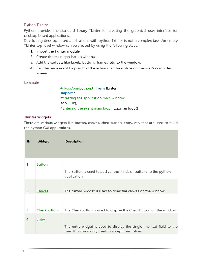 Python Tkinter Tutorial nw.docx - Python Tkinter Tutorial Tkinter ...