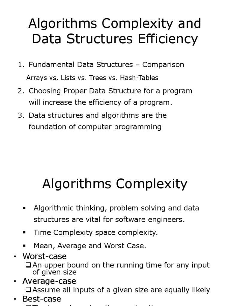 Algorithms Complexity and Data Structures Efficiency | PDF ...