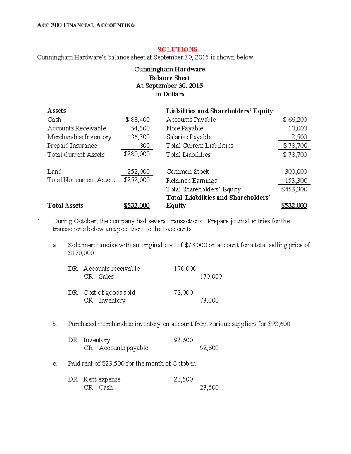 ACC 300 Financial Accounting Homework Solutions - Fall 2022 - Studocu