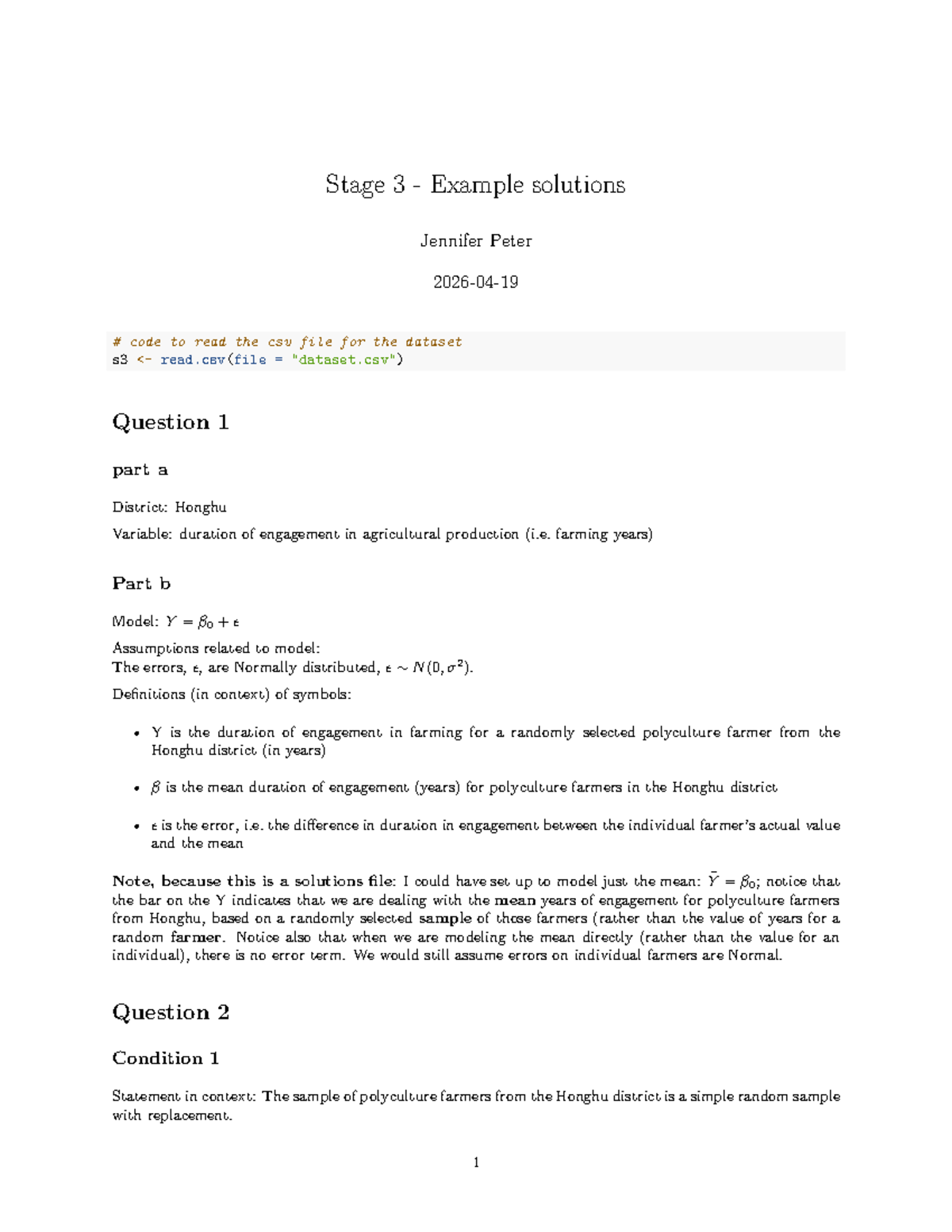 Stage 3 Example Solutions for Data Analysis in Agriculture - Studocu