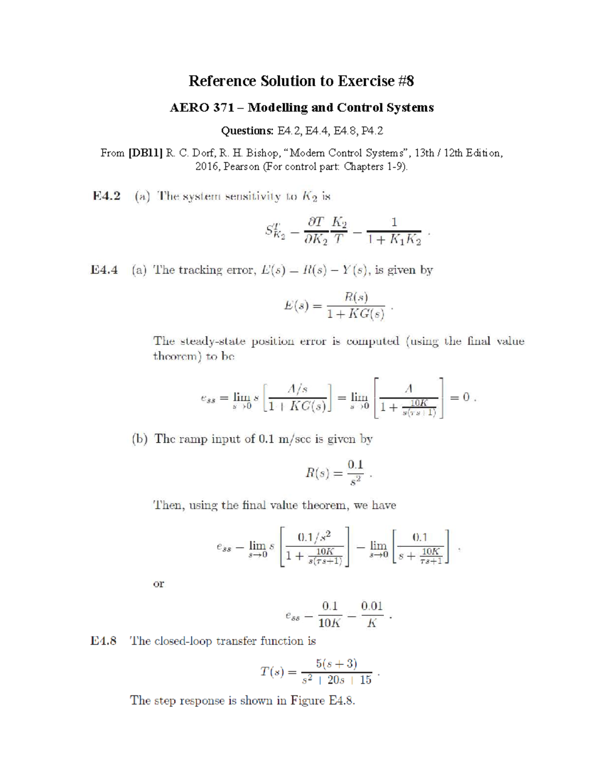 Reference Solution to Exercise #8 for Ch11 Control Systems - AERO 371 ...