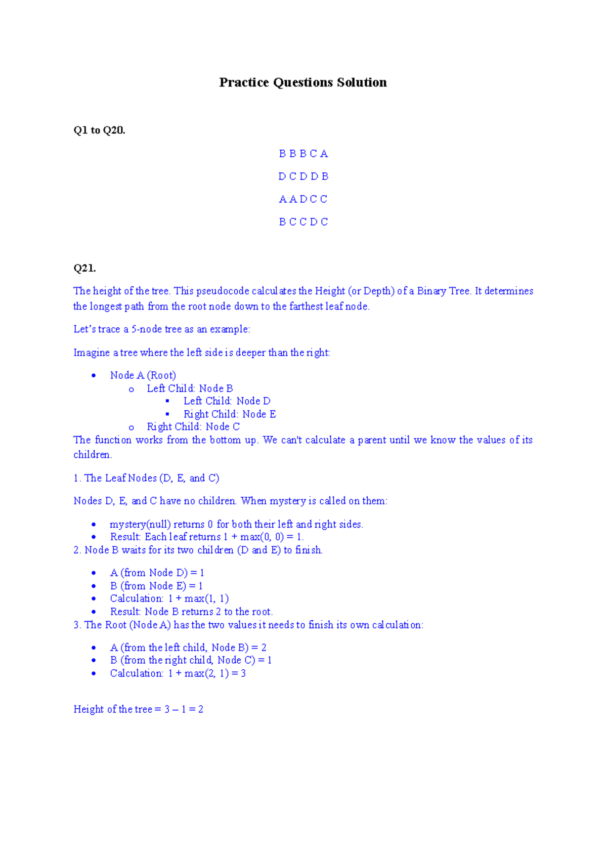 CS2040DE Practice Questions Solutions: Tree Height & Duplicates - Studocu