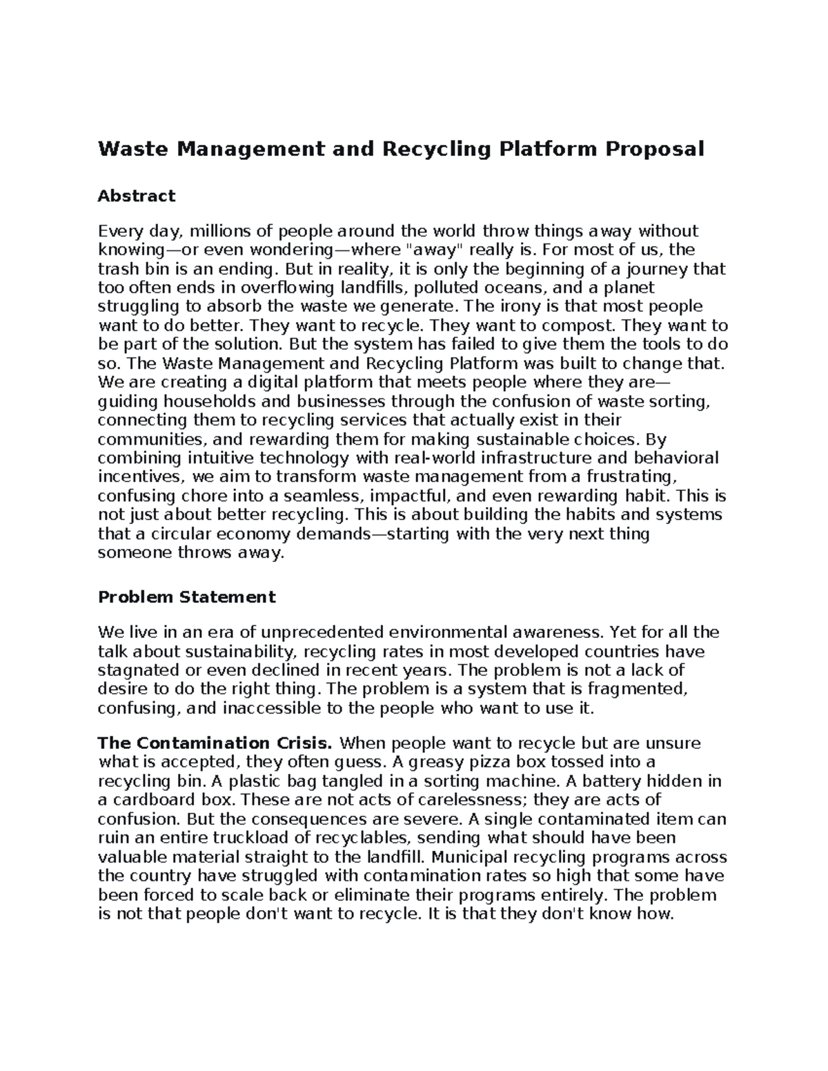 Waste Management & Recycling Platform Proposal: A Sustainable Solution ...