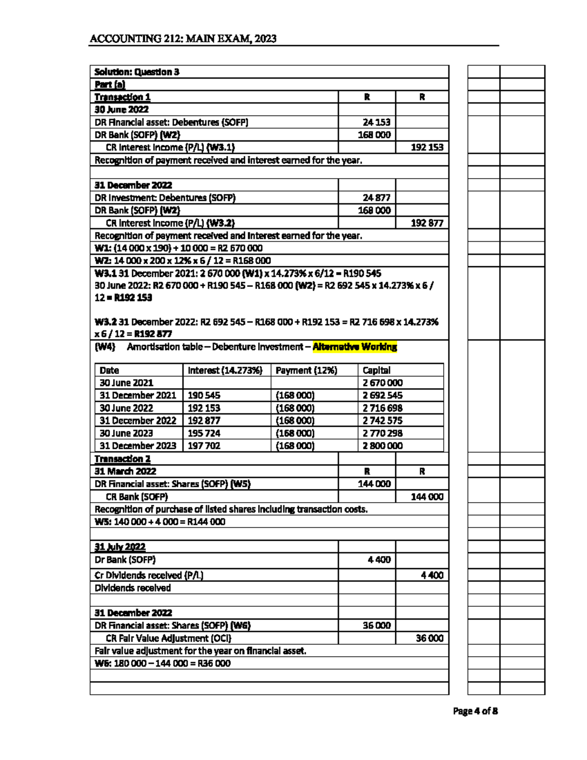 ACCOUNTING 212: MAIN EXAM 2023 Solutions for Transactions and ...