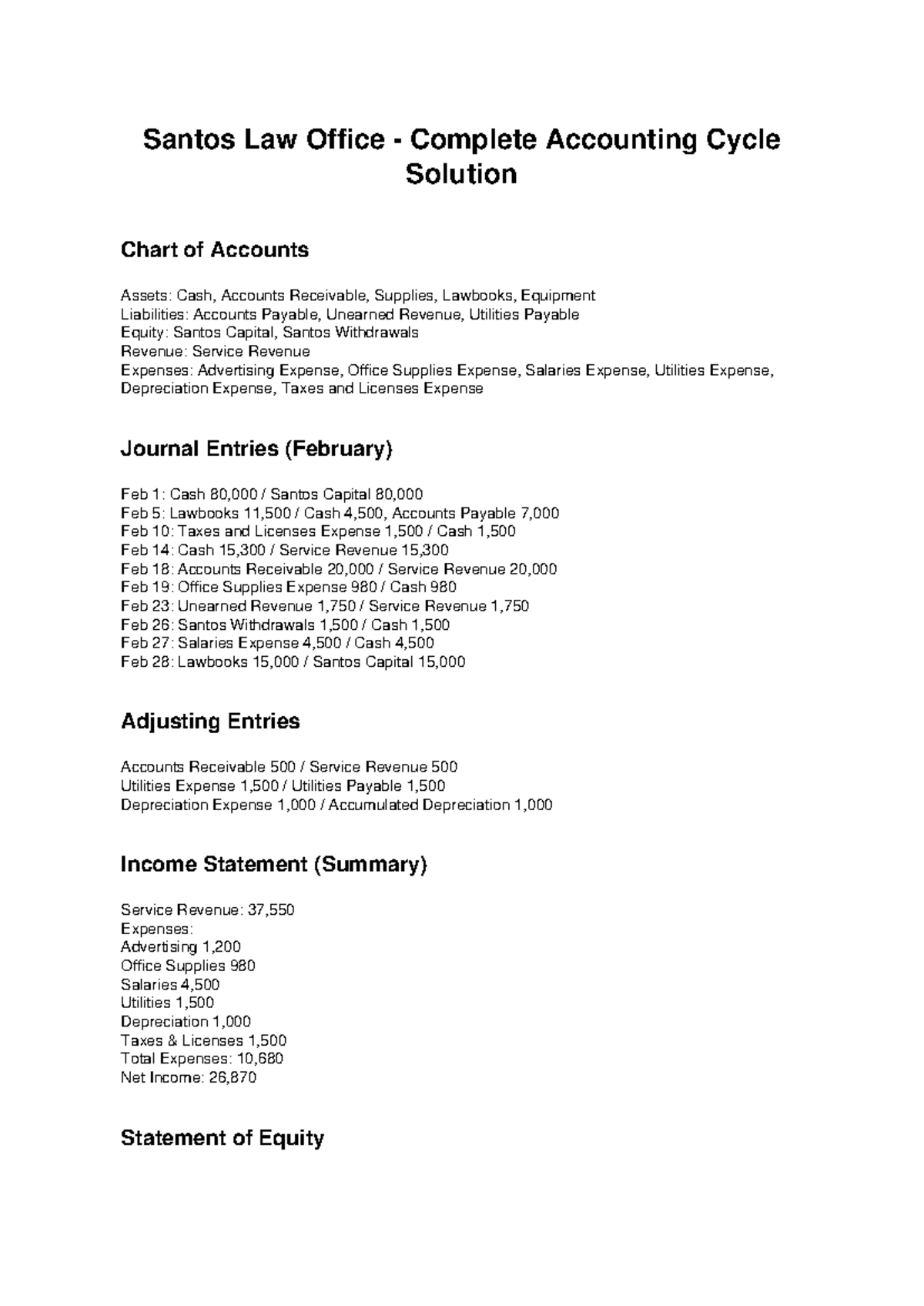 Santos Law Office ACCT 101 Complete Accounting Cycle Solution - Studocu