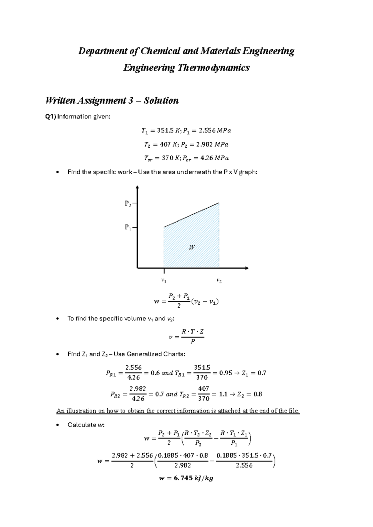 Engineering Thermodynamics (CHEM 301) Written Assignment 3 Solutions ...