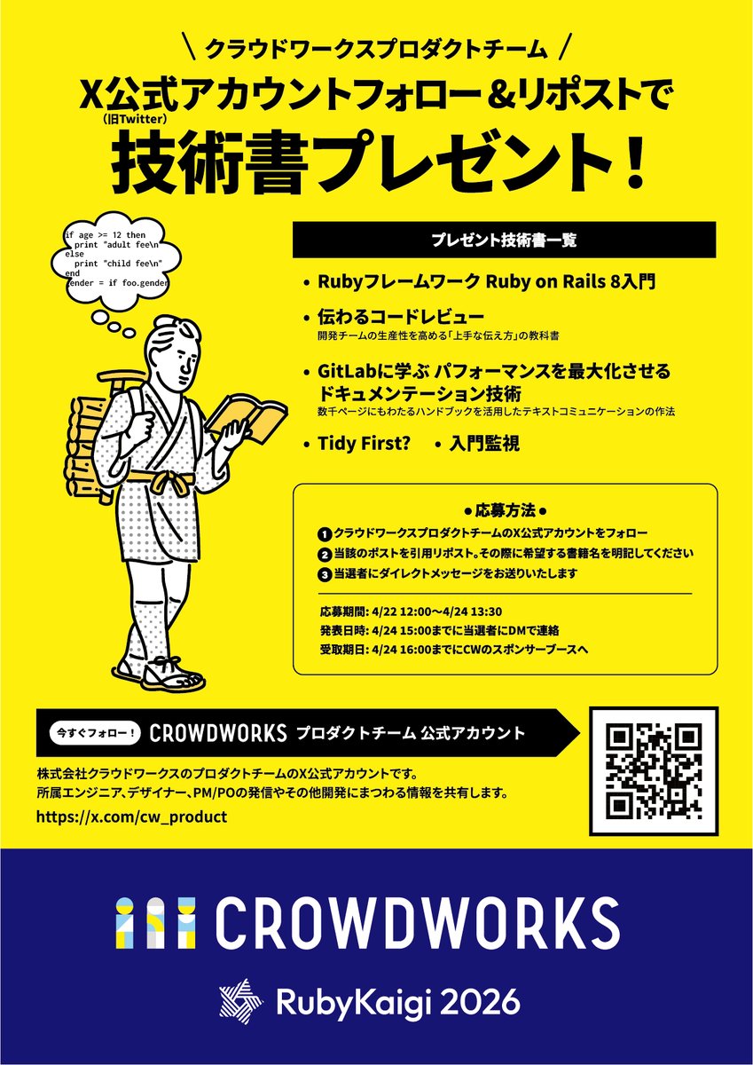 #RubyKaigi2026 参加者限定】技術書プレゼント フォロー&リポストで『入門監視』等、技術書5冊を各1名に抽選で贈呈! 応募: 4/ ...