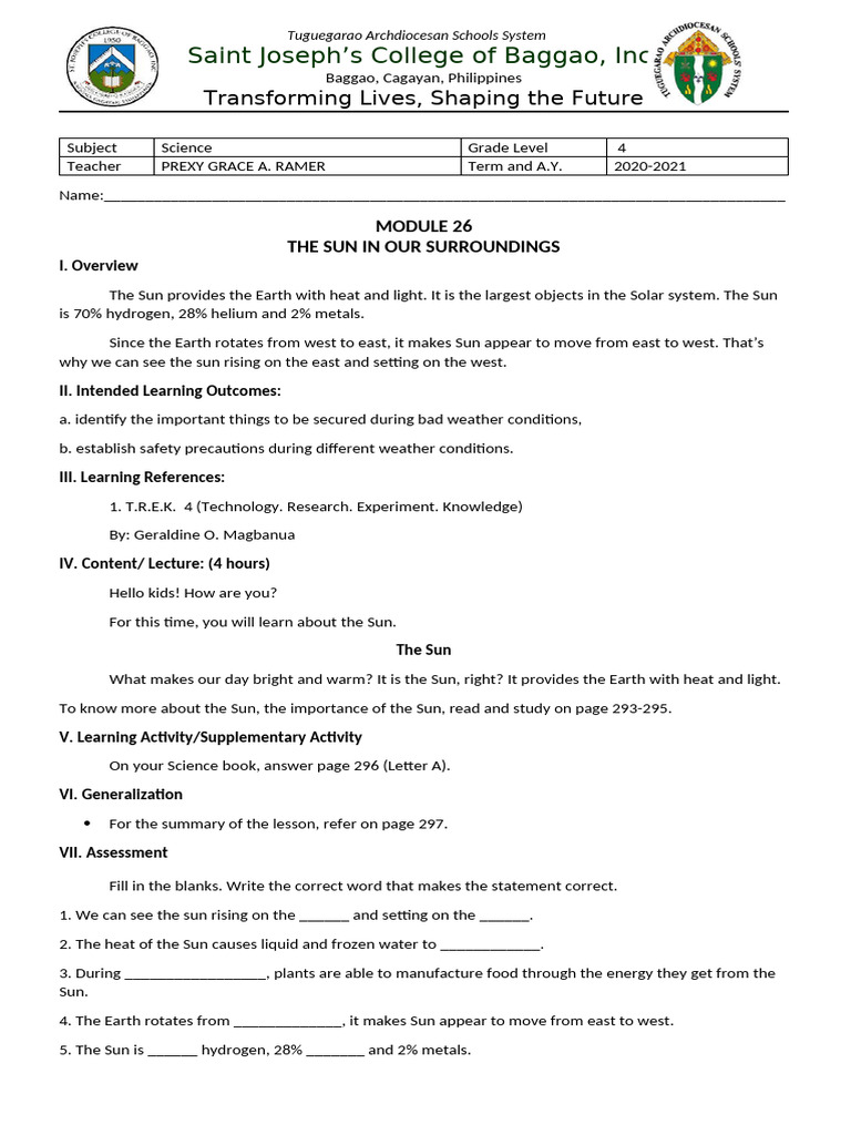 Grade 4 Science: The Sun Module | PDF