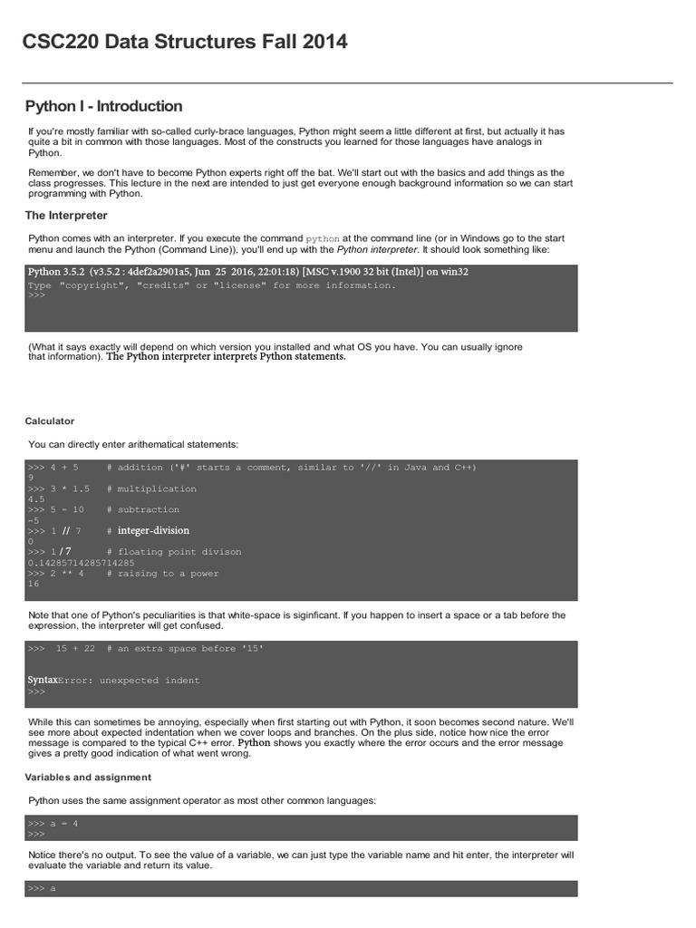 CSC220 Data Structures Fall 2014: Python I - Introduction | PDF ...
