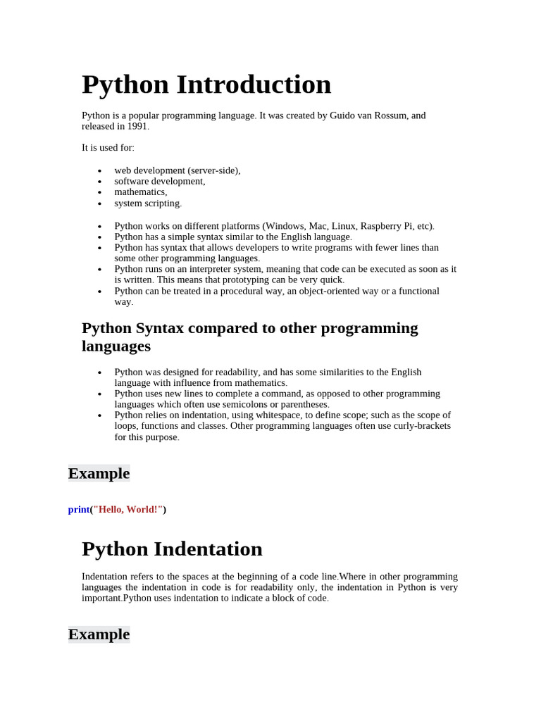 Class 2 Introduction Python | PDF | Python (Programming Language) | Web ...