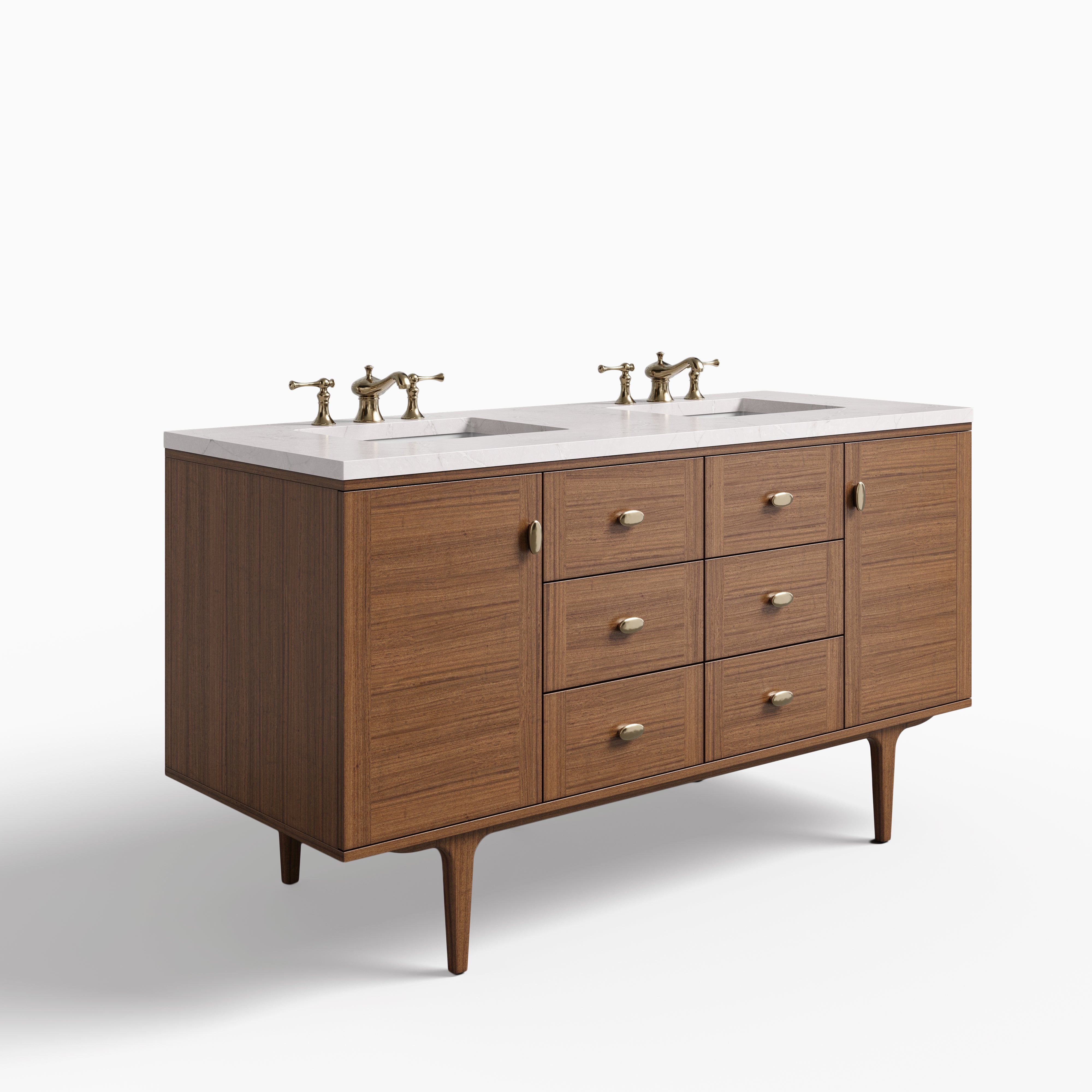 Demi 60" Double Vanity in Mid-Century Walnut with 3 cm Victorian Silve