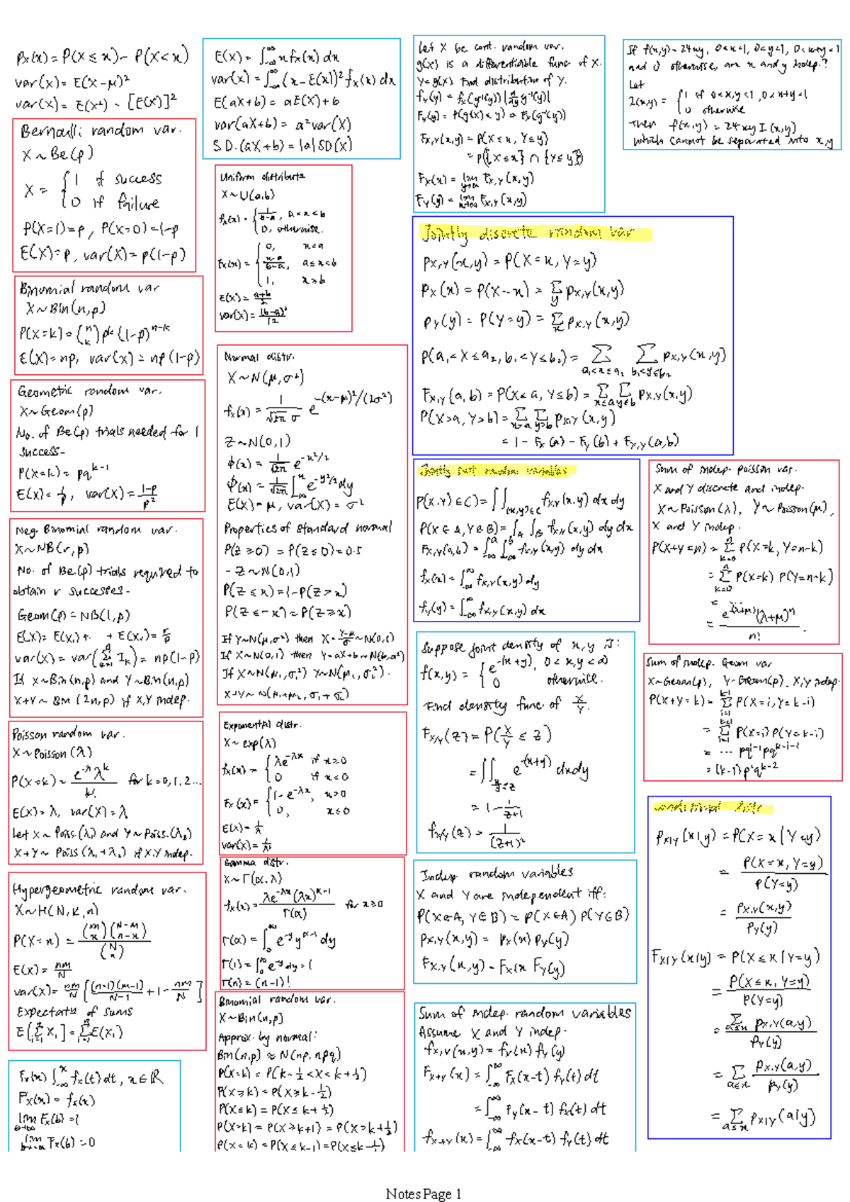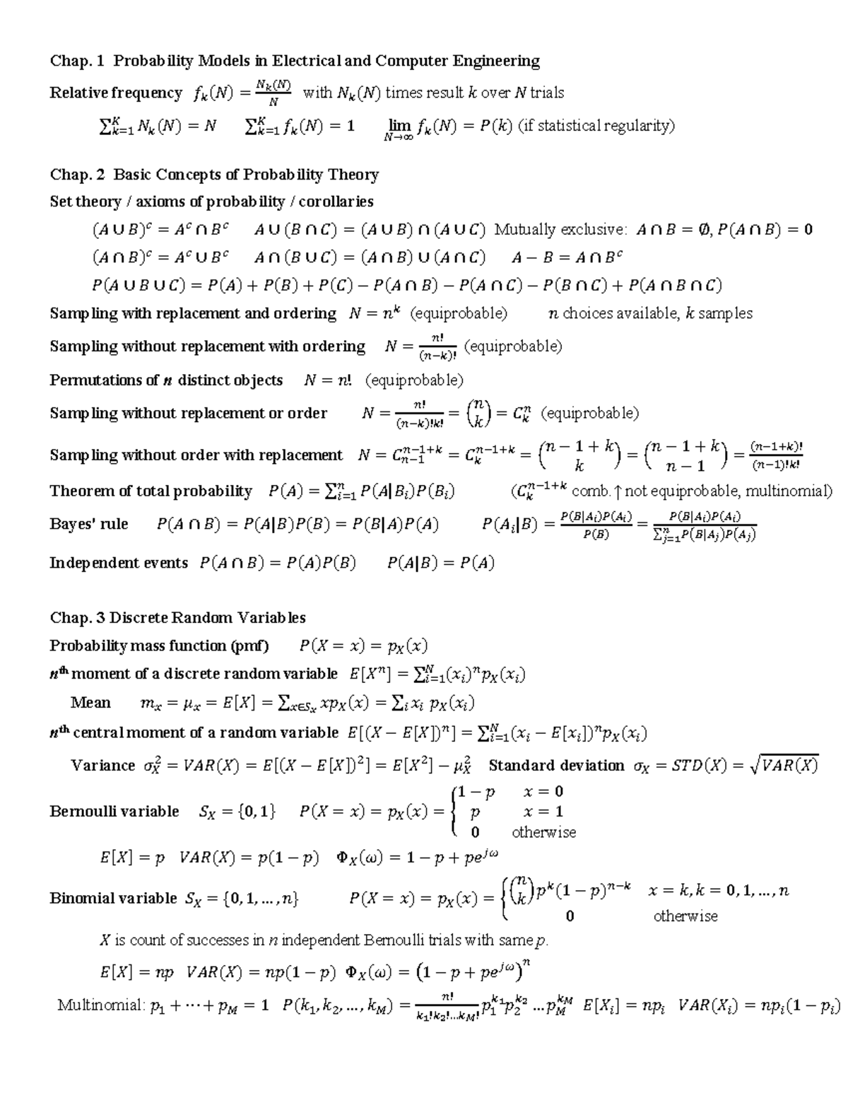 EE2012 Final Exam Cheatsheet on Discrete Random Variables - Studocu
