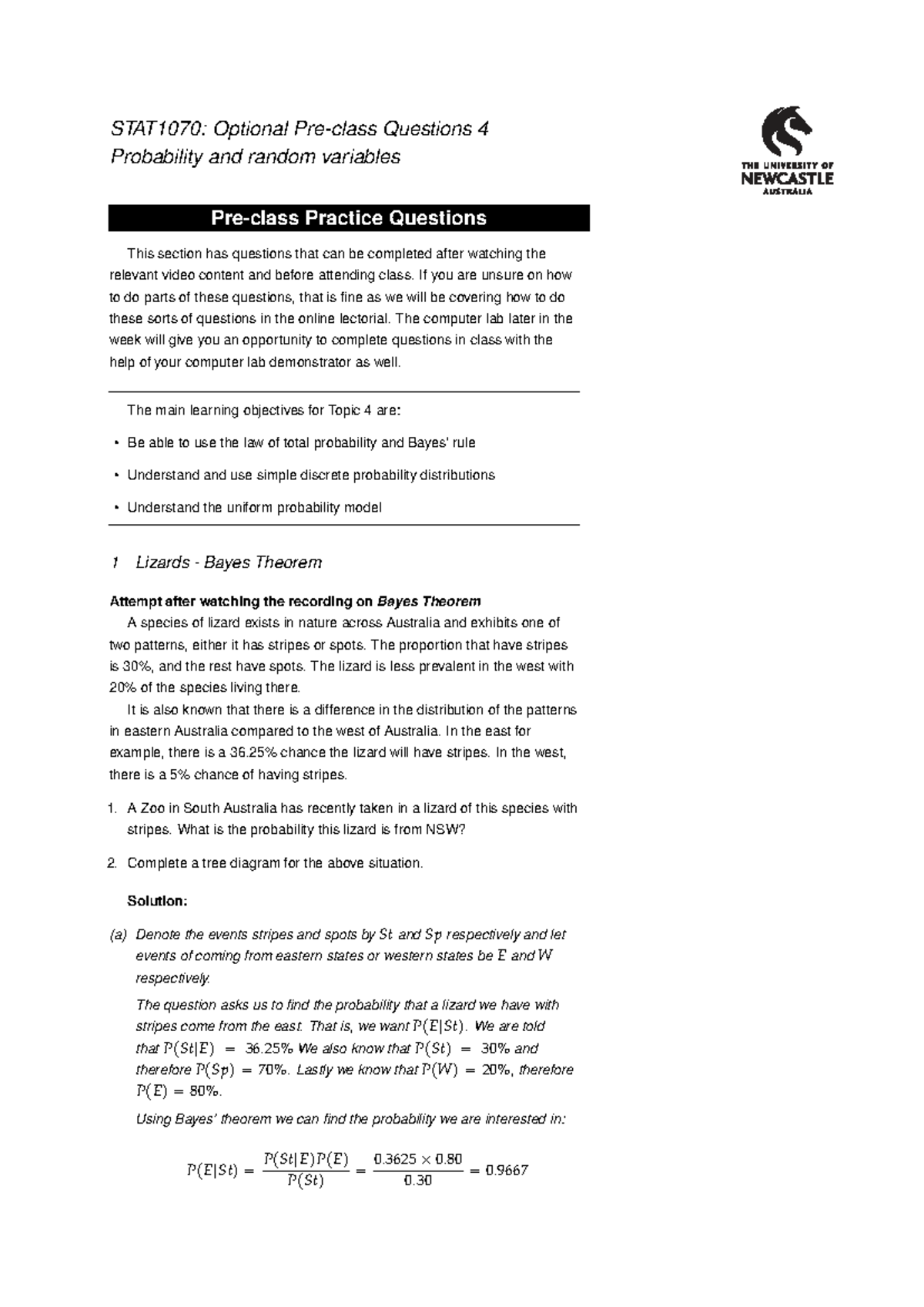 STAT1070: Practice Questions on Probability & Random Variables - Studocu