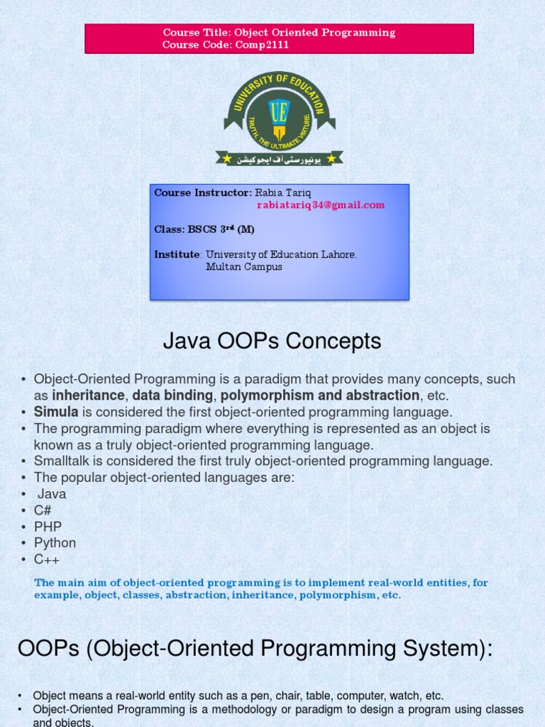 OOPS Concepts in Java: Key Principles & Examples - Studocu