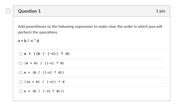 Solved Question 1 1 pts Add parentheses to the following | Chegg.com