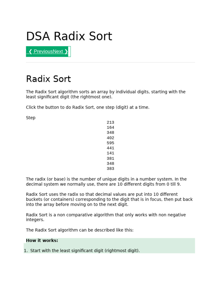 DSA Radix Sort | PDF | Algorithms And Data Structures | Algorithms