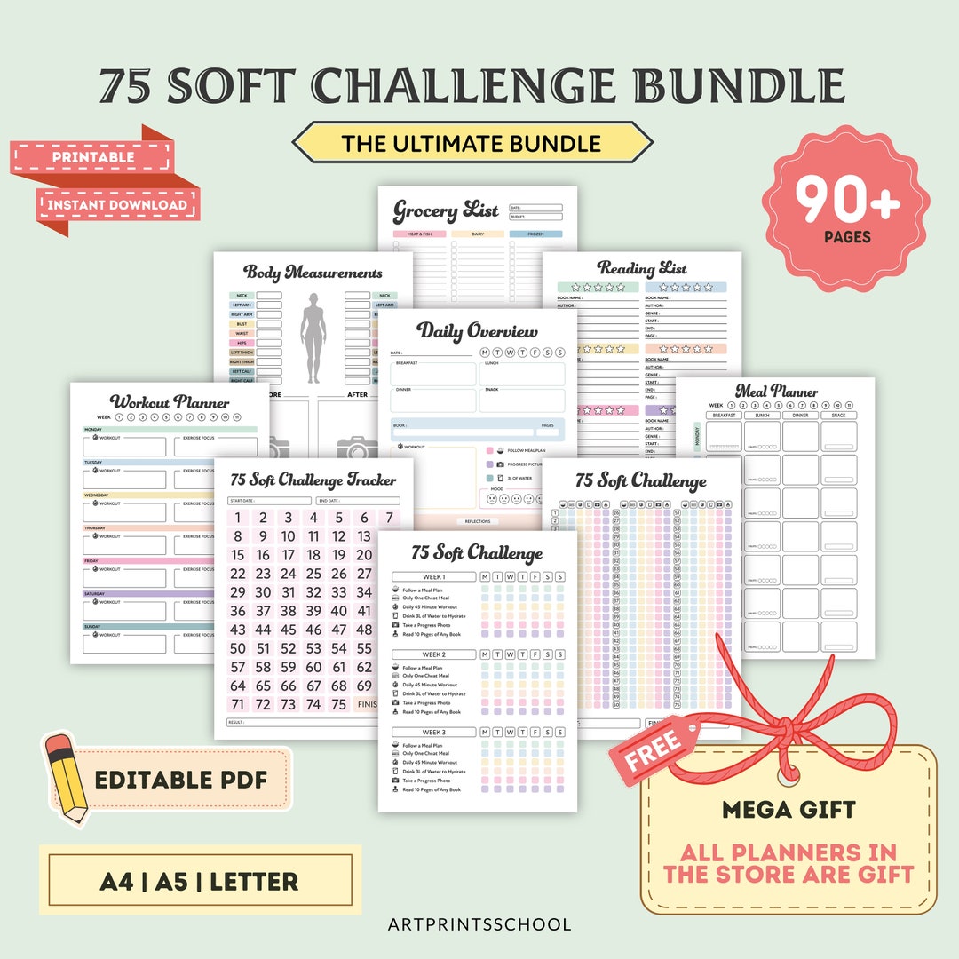 75 Soft Challenge Bundle Planner Printable Easy Challenge - Etsy