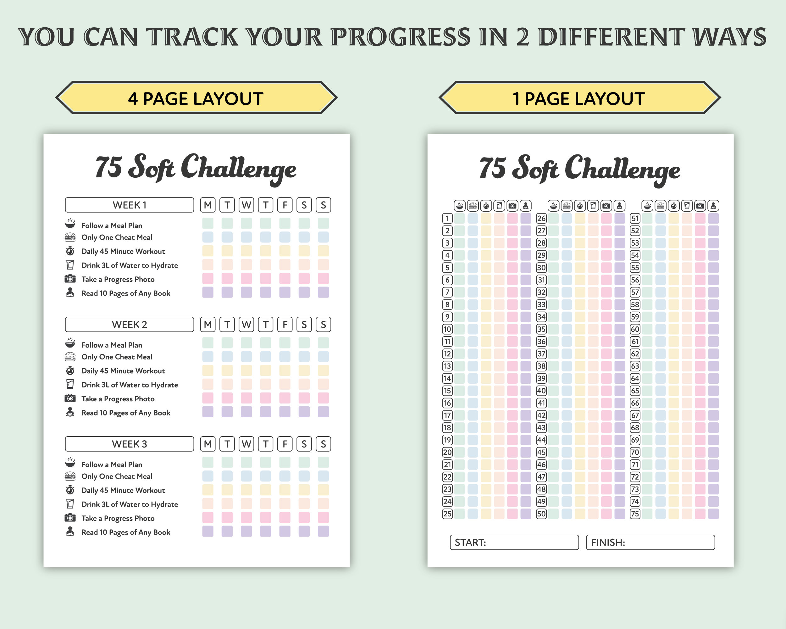 75 Soft Challenge Tracker and Meal Planner Printable