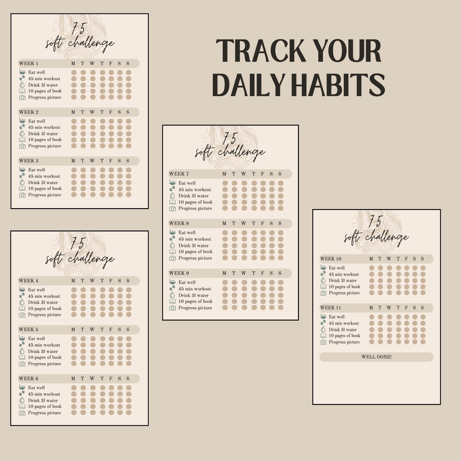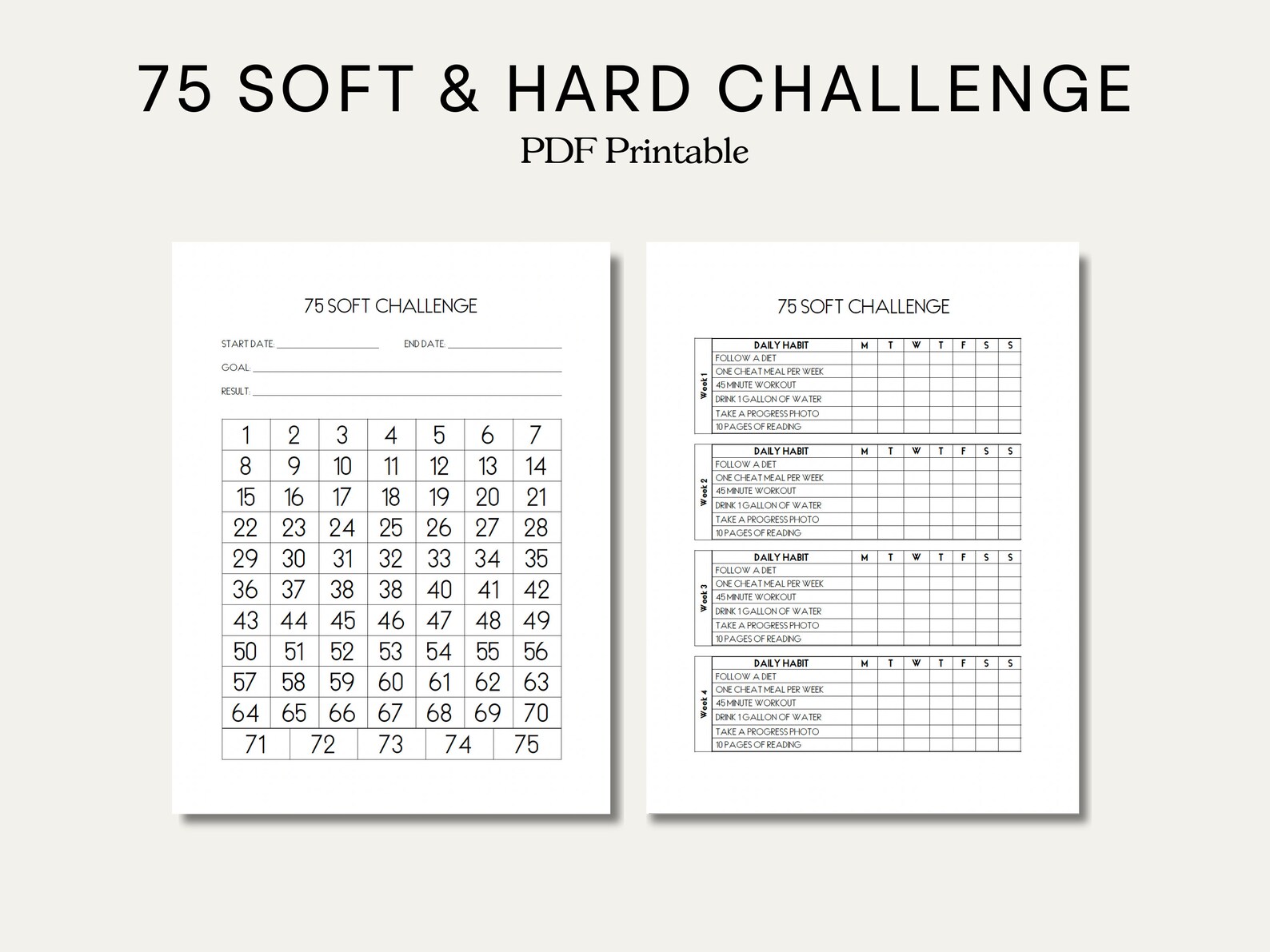 75 Soft Challenge Printable Bundle, 75 Easy Challenge, 75 Habit Tracker ...