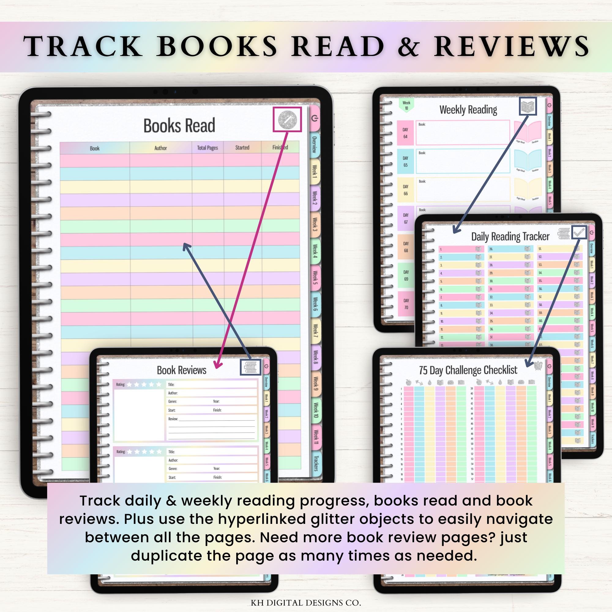 75 Soft Challenge Digital Hyperlinked Planner | Fitness Tracker Journal ...