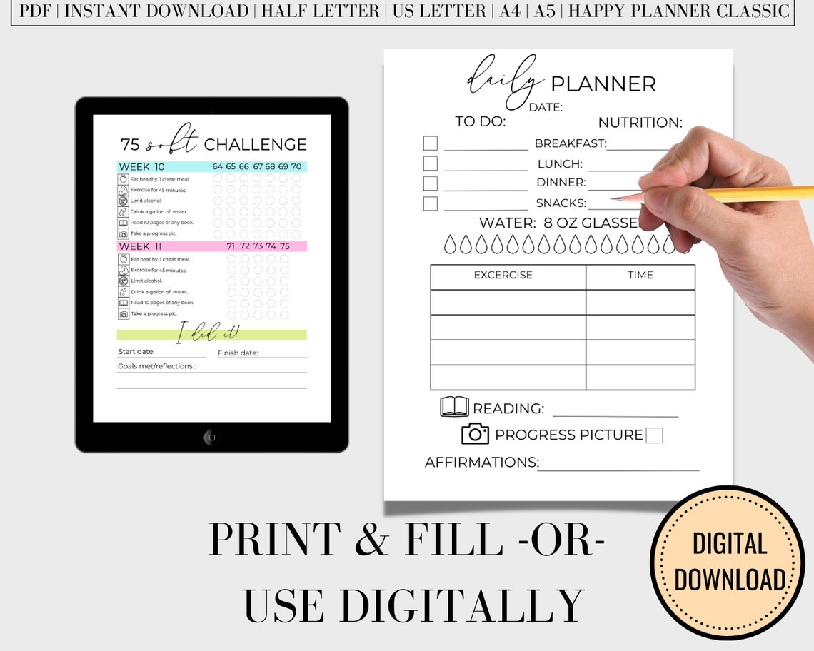 75 Soft Challenge Tracker: Printable Planner (digital Download) - Etsy ...