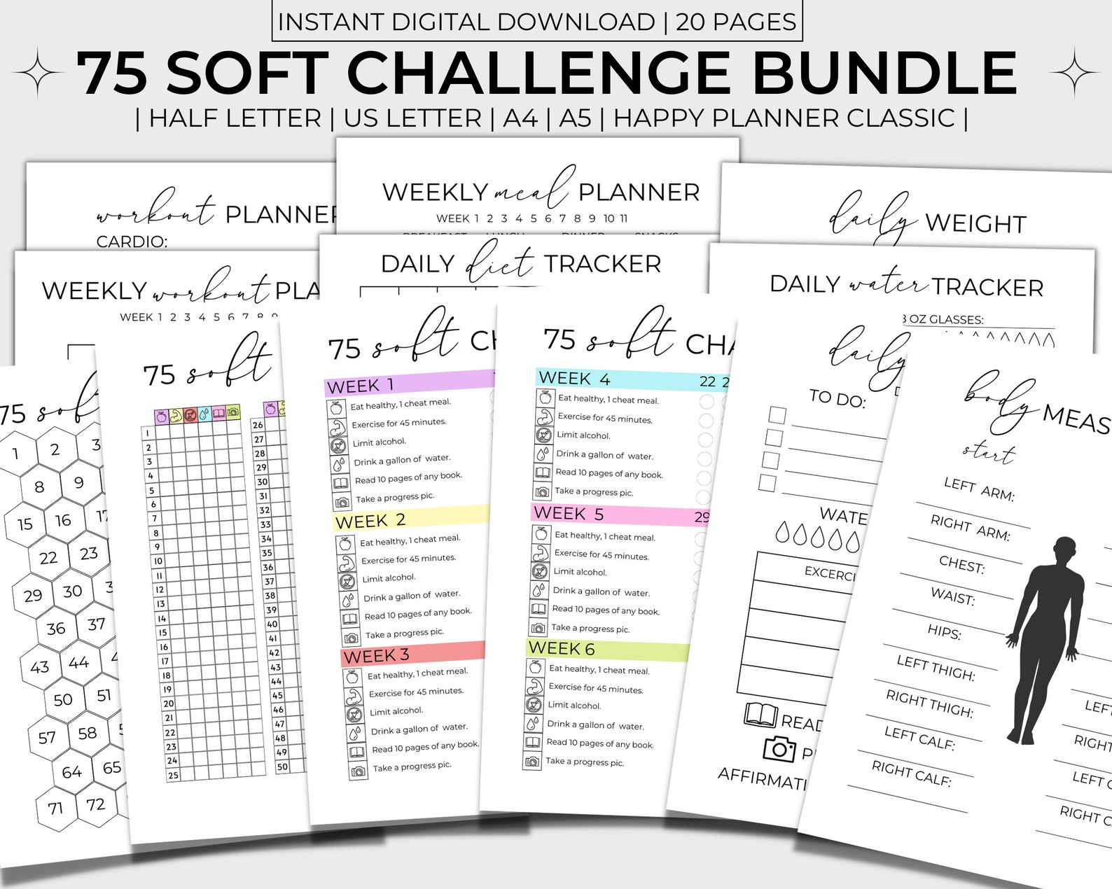 75 Soft Challenge Bundle Printable, 75 Soft Tracker, 75 Soft Printable ...