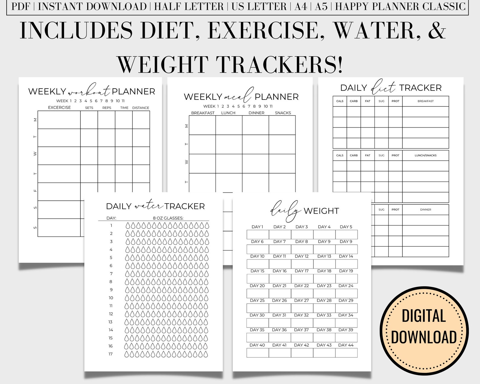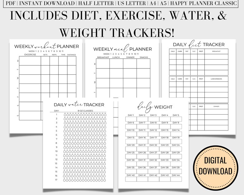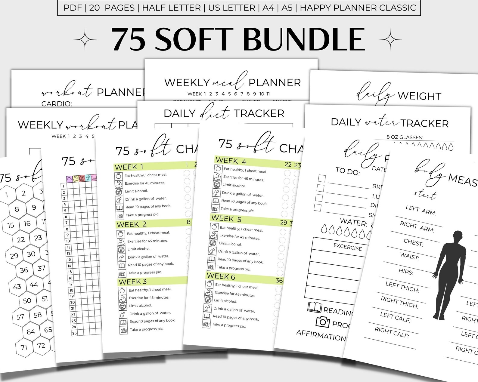 75 Soft Challenge Bundle, A4, US Letter, Daily Food Diary, Habit ...