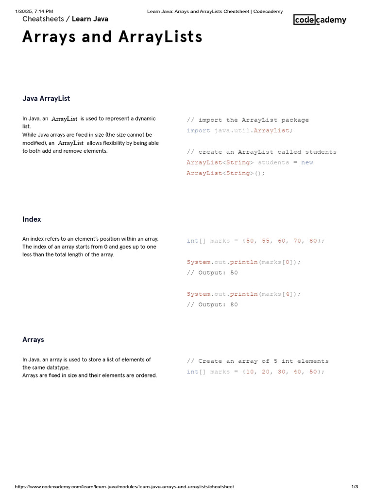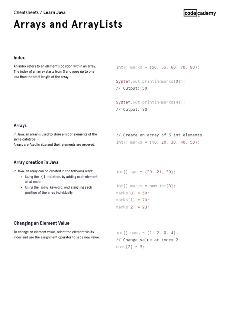 Arrays and ArrayLists Cheatsheet Codecademy.pdf - 6/5/2020 Learn Java ...
