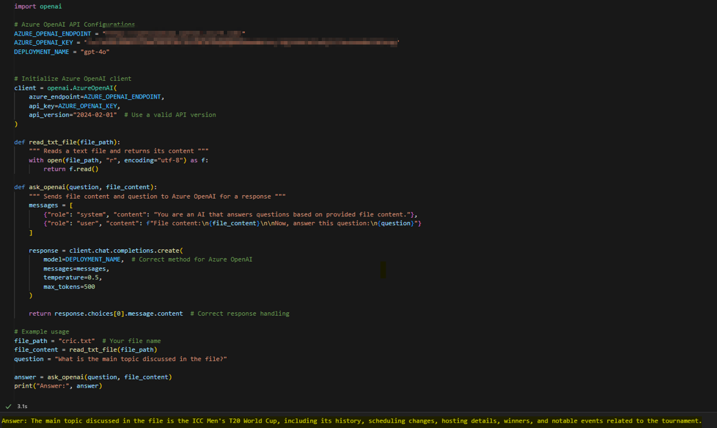 how to use Azure OpenAI API to upload a file and ask some questions ...