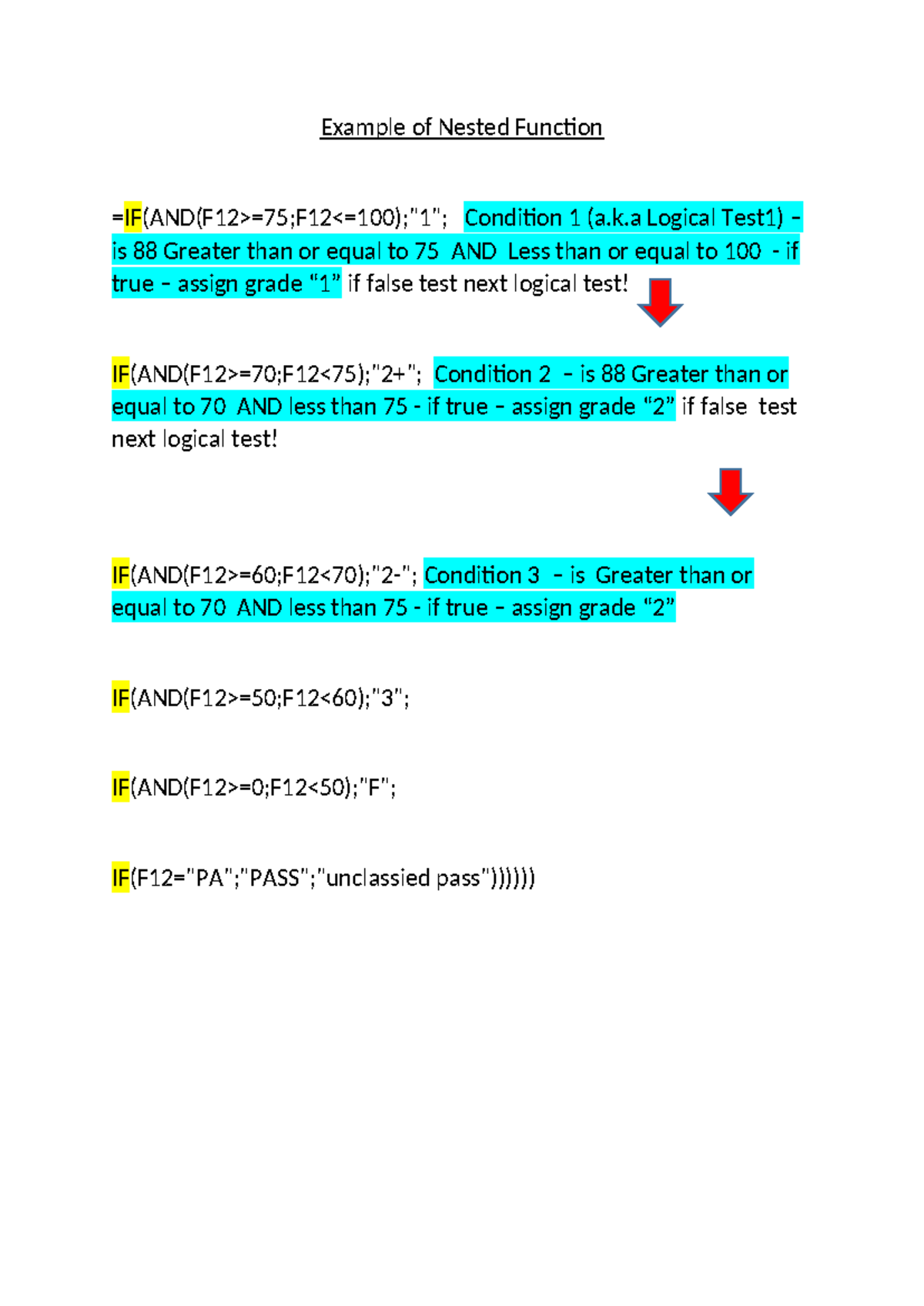 Example Nested Function - Example of Nested Function =IF(AND(F12>=75;F12