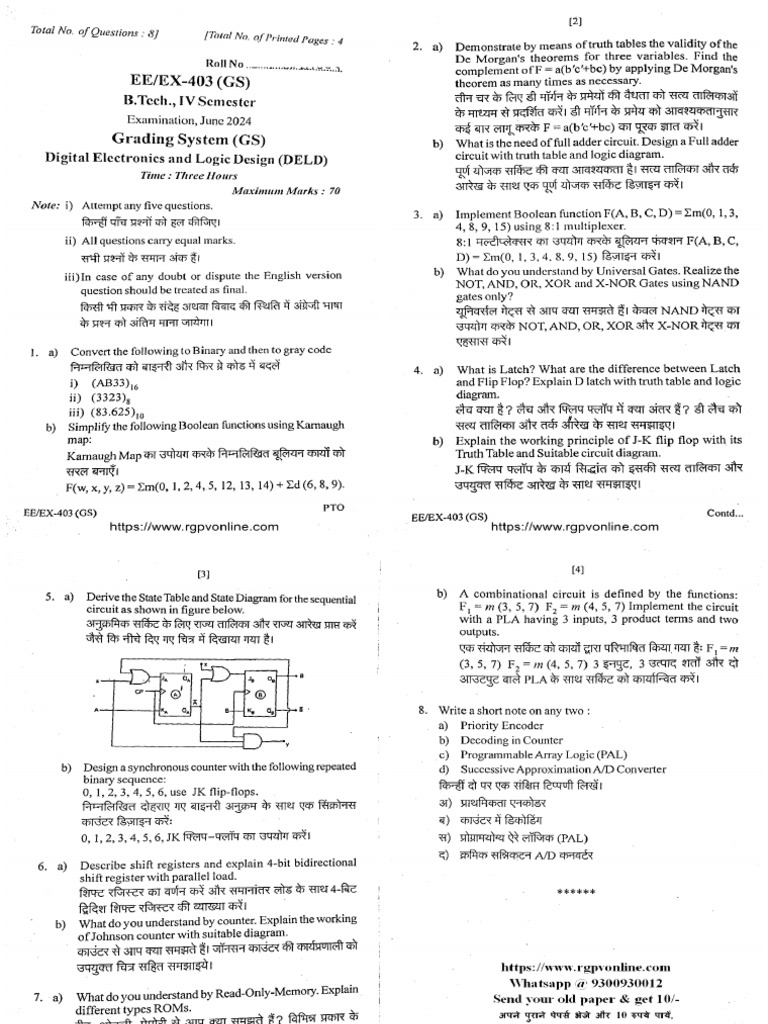 Ee Ex 403 Digital Electronics and Logic Design Jun 2024 | PDF